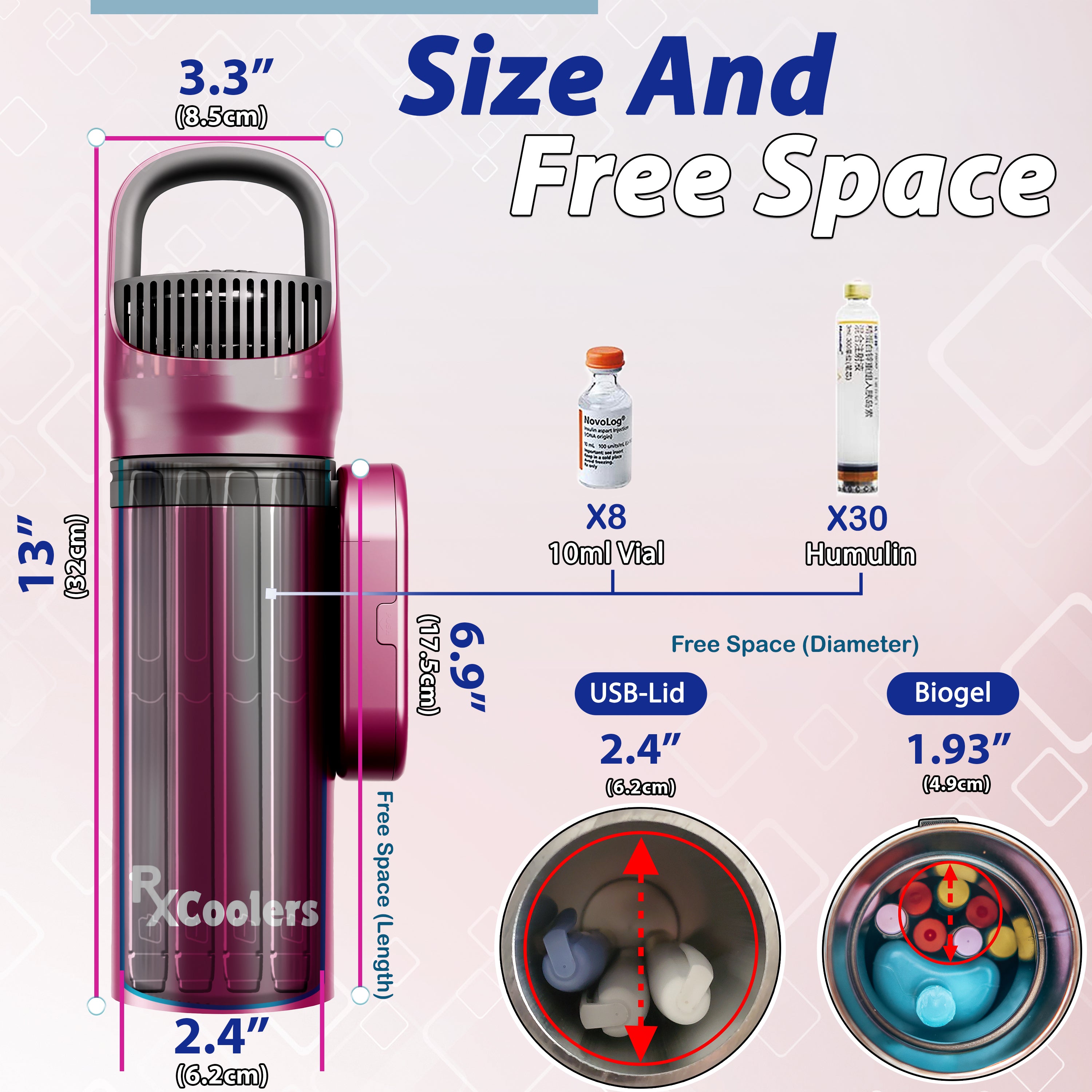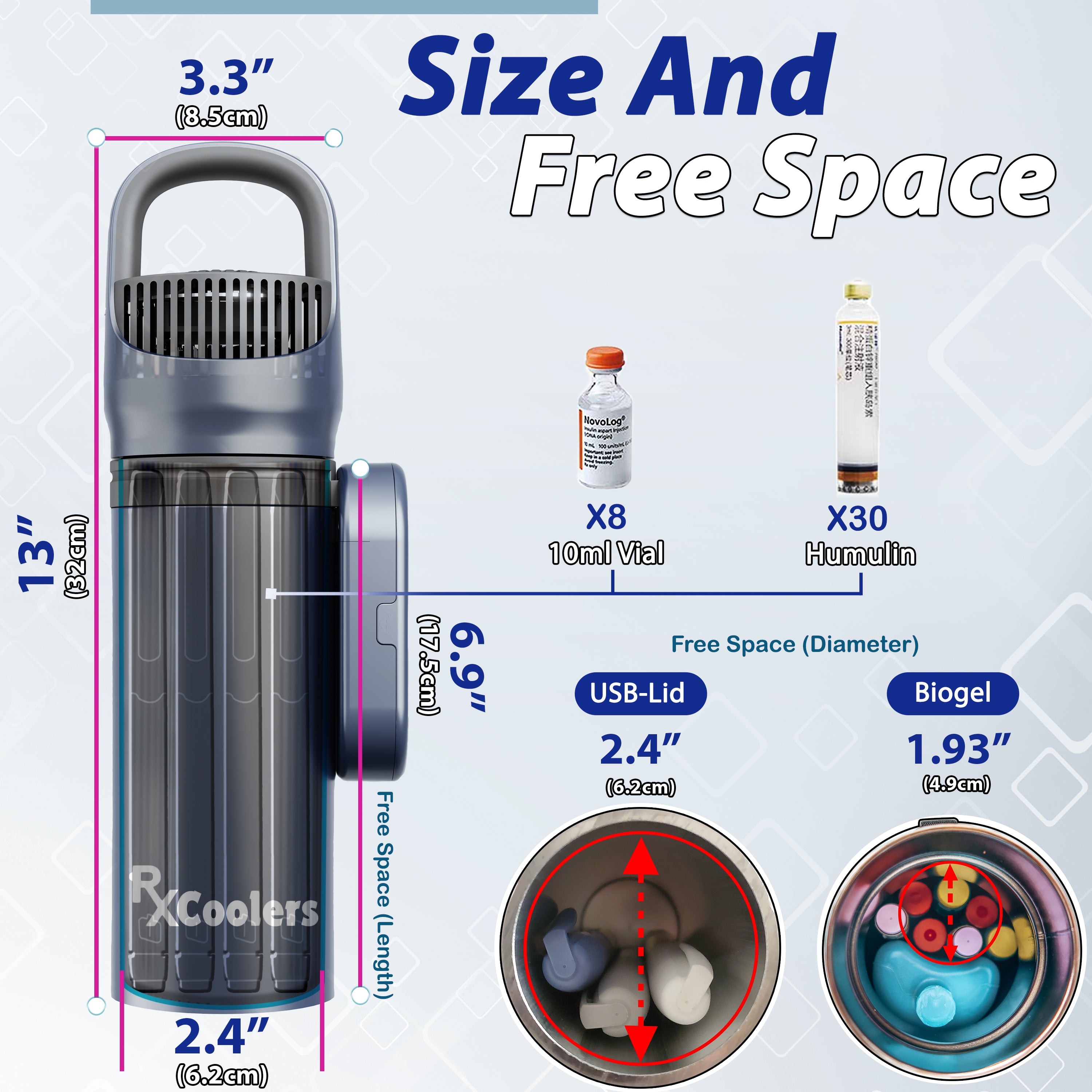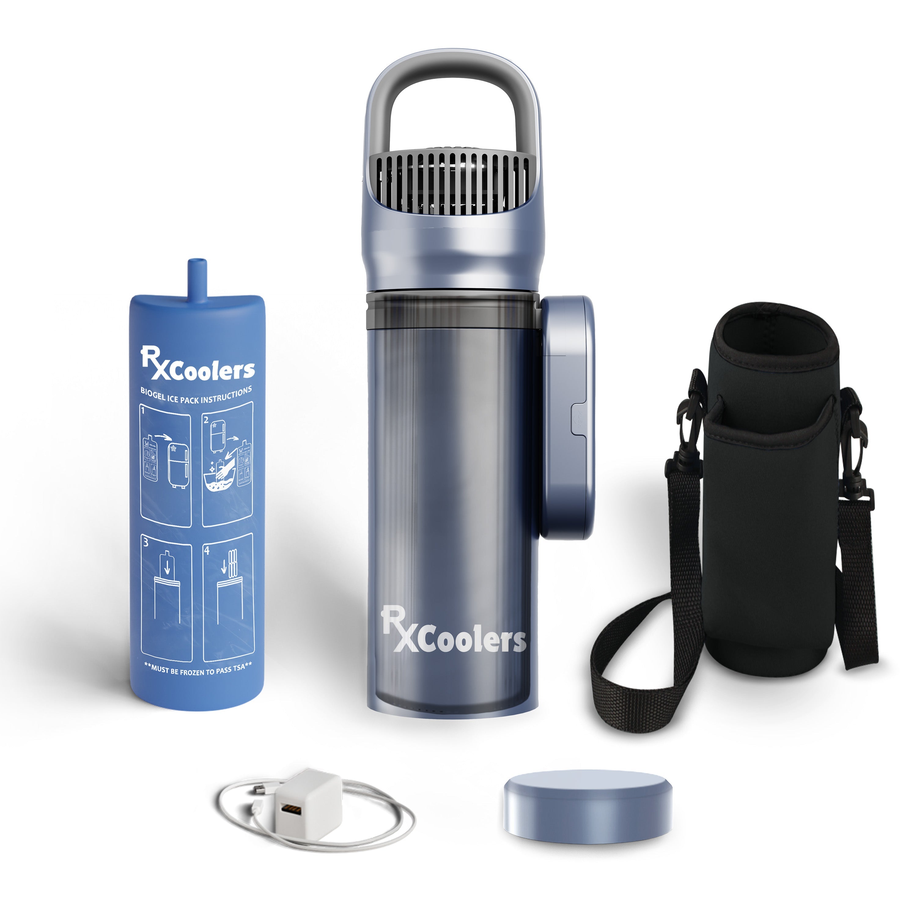 The RxCoolers Max is a small, portable refrigerator for medicine. Whether you're managing diabetes with insulin, Ozempic or Mounjaro, or another condition requiring refrigerated medicine, this travel refrigerator is built with real-world needs in mind. It uses a dual cooling system combining USB-powered refrigeration with a high-performance cooling pack- ideal for travelling, commuting, or spending time outdoors.